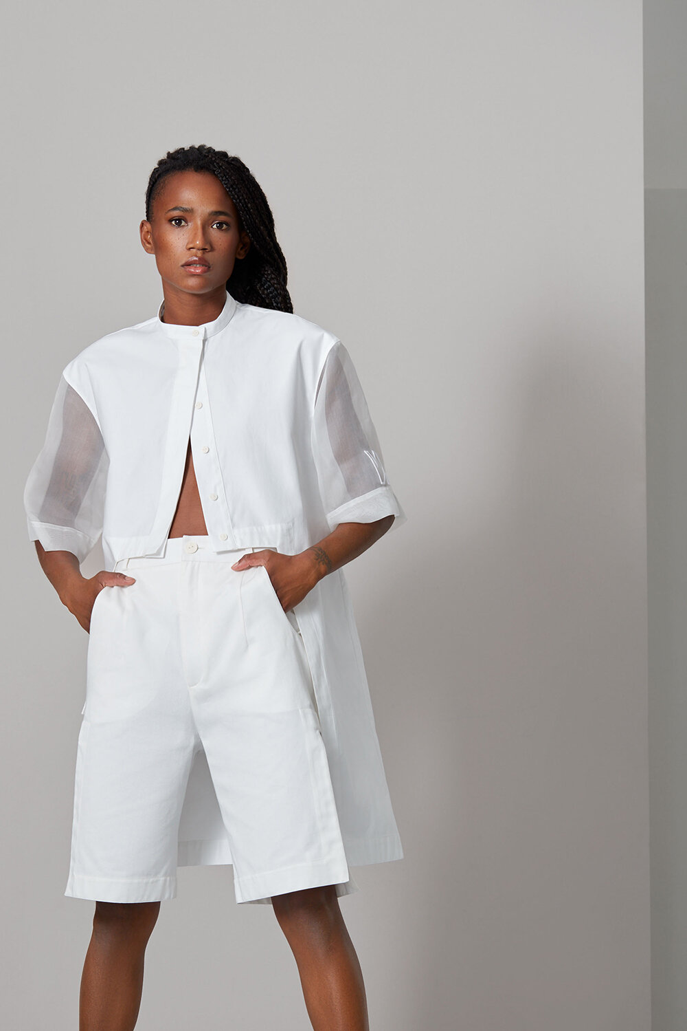 The collection showcases a modern femininity, referencing shapes from streetwear and melding these with carefully selected silk organzas, organic cottons and fluid Tencelâ„¢ to create modern pieces which are subtle but impactful. Easy and subtly structured shapes are combined with pure bold colours, precise detailing and exquisite finishing, allowing the wearer to take these pieces throughout the day and into relaxed evenings.